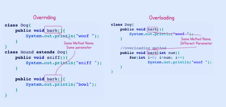 - 편의성 제공: 어떤 타입이나 개수의 데이터를 넘기든, 프로그래머는 항상 똑같은 이름의 메서드만 호출하면 됩니다.